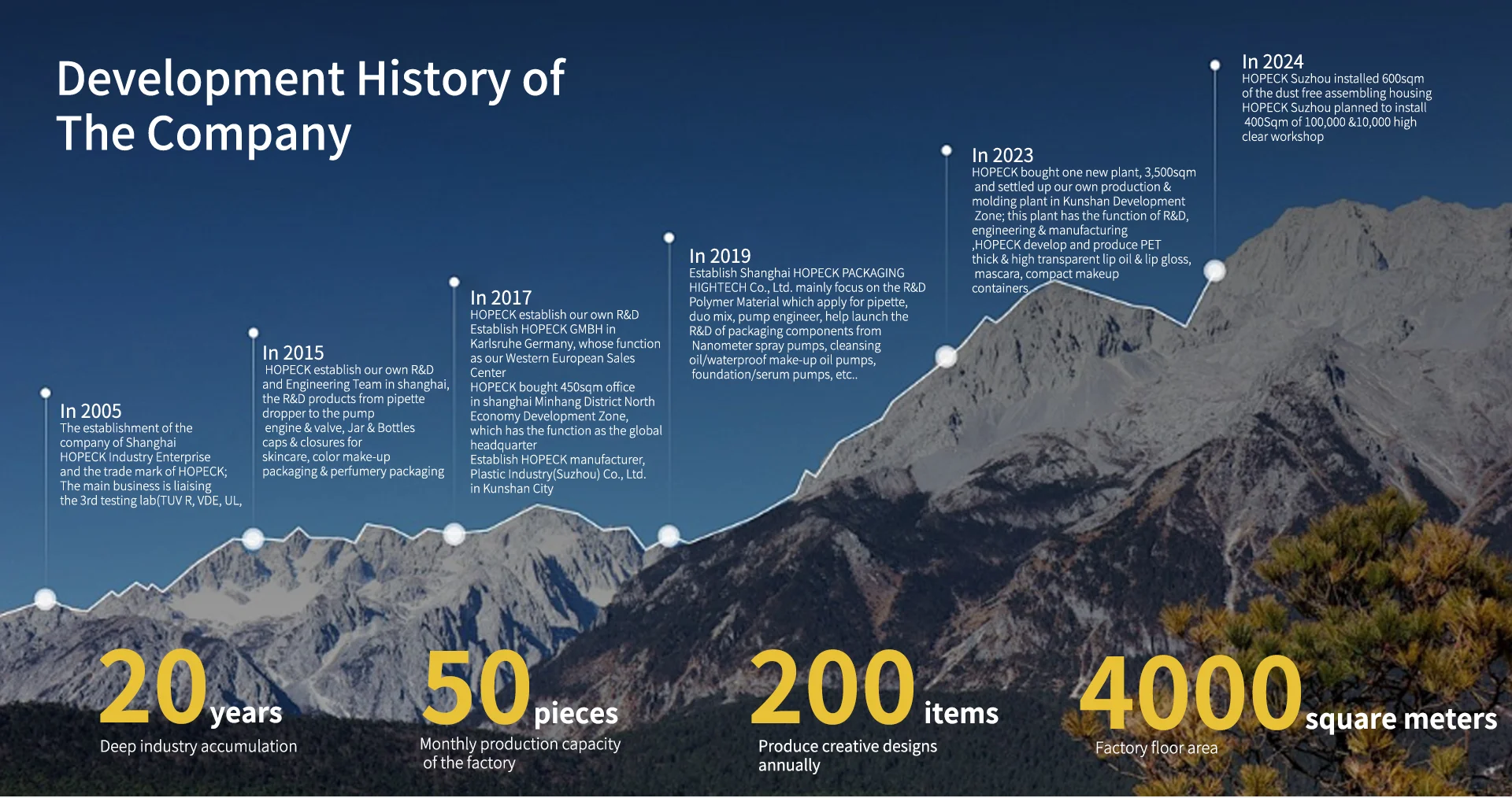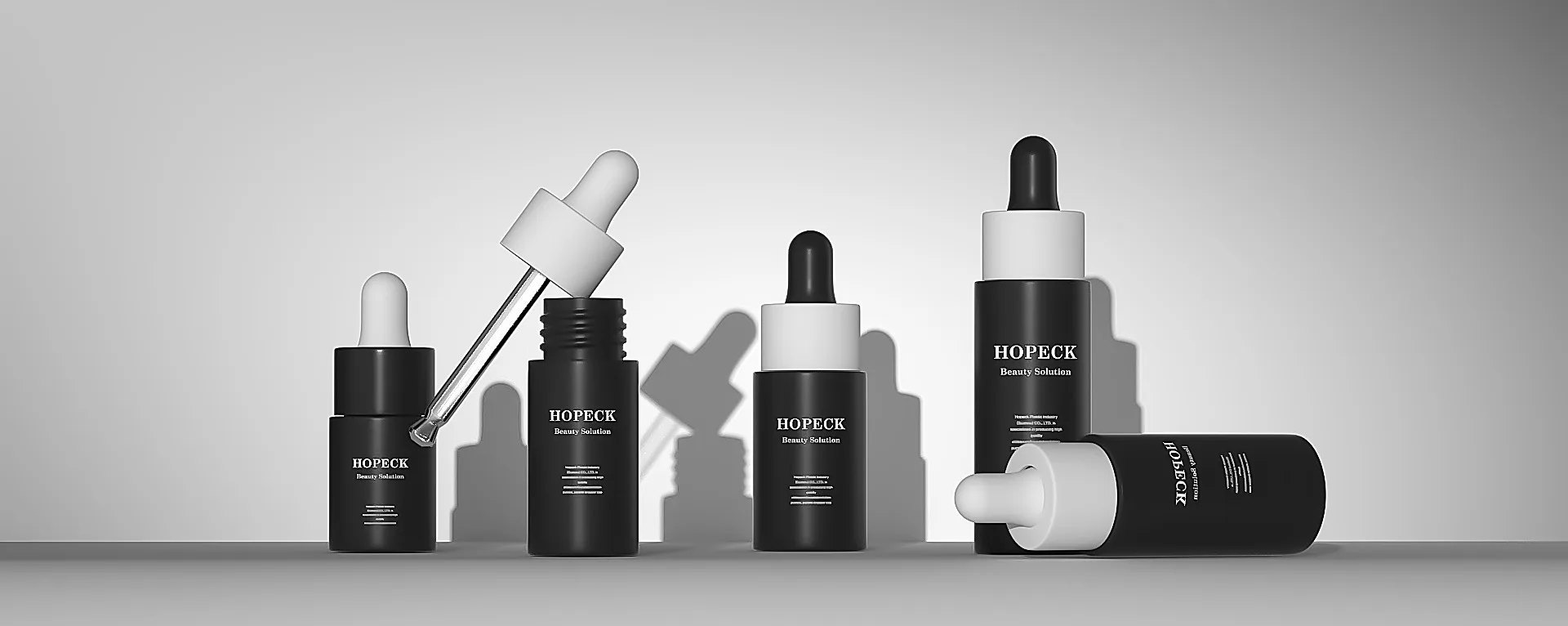 Hopeck is specialized in automatically producing high quality oil/serum/foundation/lotion pumps, pipette dropper cap, push button pipette dropper cap and rotary push button pipette dropper cap, perfumery caps, quantitative pump valve components, perfumery caps(Surlyn, PP, Zamak, Brass,zinc alloy, ceramic etc); skincare & cosmetics cap &closure, tube caps, PET makeup packaging(lip gloss, mascara,lip oil,twist-up pen, clip pen, compacts in sustainable materials), as well as PETG, PET, PP, PE, MS injection molding bottles& blowing molding bottles.